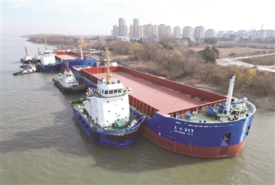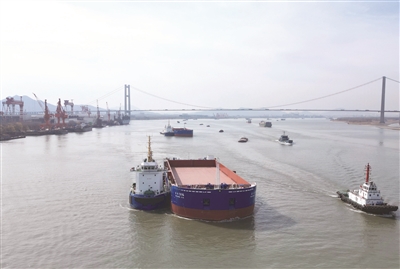 1月7日,位于镇江高新区的省镇江船厂2艘顶推拖轮、2艘12000DWT转运船同日出厂,顺利启航。此次出厂的4艘船舶是为中远海运散货运输有限公司“一带一路”项目——几内亚铝土矿项目配套建造的驳运设备,标志着该项目第四批次所有船舶全部建造完毕,圆满收官。