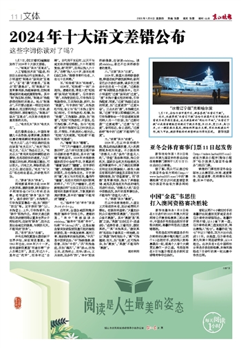 1月7日,《咬文嚼字》编辑部发布了2024年十大语文差错。