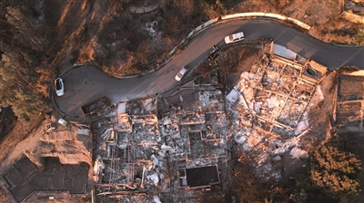 1月16日在美国加利福尼亚州马利布拍摄的被烧毁的房屋(无人机照片) 新华社发