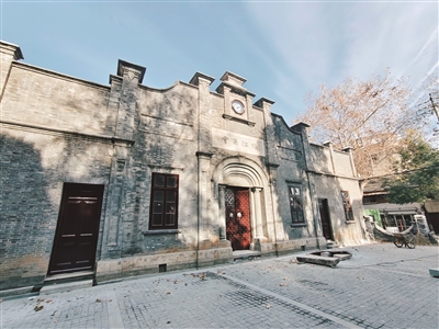 南面门楼最大亮点是“镇江商会”门额上方的自鸣钟。大钟在商会老照片中并没有发现,但是从门楼预留的位置和形状来看,应为时钟的位置无疑。这次修缮特地选用了一口具有欧式风格造型的大钟,整点会报时,且钟声悠扬,不仅在商会能听到,甚至连周边的居民和商户也能听到。每当钟声一响,仿佛又回到过去的时光……再看南面门楼前的地面,原先铺设的是用于城市道路的面包砖,现在把这些砖拆除,重新铺上小方砖。面包砖一拆,路面低下去五六厘米,原先建筑脚下的排水沟才露了出来。