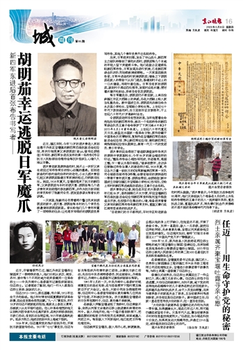 胡木青老家是荣炳曲阳村,她不止一次听父亲生前说过写布告背后的惊心动魄的遭遇。回到老家曲阳行政村曲阳自然村的老宅,小女儿胡木青回忆起父亲胡明茄躲避日军抓捕的经过,仍然眼泪汪汪。她说,1938年夏天,宝堰前隍来了抗日的新四军,父亲胡明茄与本村的胡天喜、胡明法等几个进步青年来到前隍村参加新四军,并作为抗日政训班的学员聆听了陈毅司令员、胡发坚参谋长等首长的讲课。