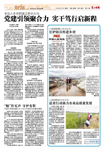本报讯(李梅 记者 俞佳融)为切实保障水稻生产安全,助力农户增产增收,近日,人保财险扬中支公司农险部协同农业专家前往扬中市雷公岛,针对岛上水稻开展全面巡查工作。