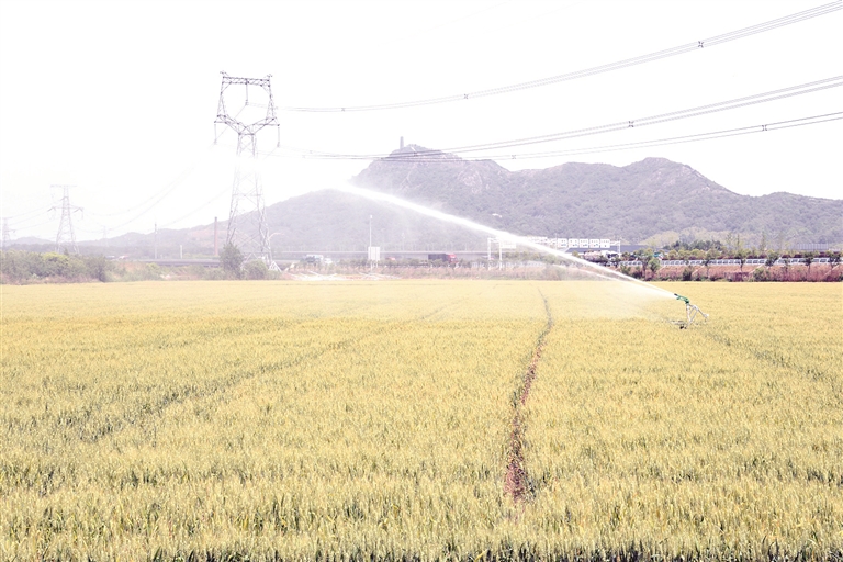 5月7日,在镇江经开区的一处麦田里,喷灌机正持续作业,为受旱小麦提供应急喷灌。目前全区抗旱喷灌面积已达约1万亩,最大限度降低旱情对农业生产的影响。 马镇丹 闫发宝 摄影报道
