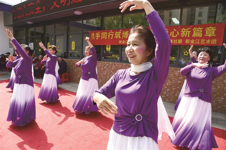 5月7日,润州区和平路街道新金江艺术团的志愿者来到社区居家养老服务中心,为老人们送上十多个自编自演的歌舞、民俗、快板等文艺节目,丰富老年人的精神文化生活。 石玉成 摄影报道