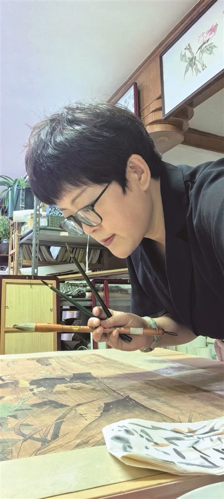 曾有一幅民国时期的工笔画作,经她揭裱修复后重现芙蓉出水之姿,“揭裱时连呼吸都要放轻,稍有不慎就可能让百年墨韵烟消云散”。