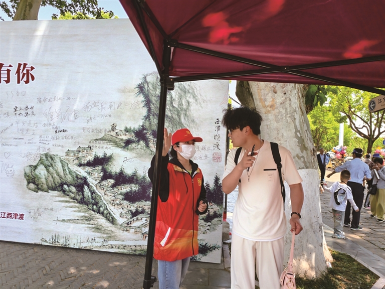 景区创新采用“全场景文明浸润”模式,文明旅游、文明拍照的提示语在街区频频出现,停车场还设置多处温馨的文明旅游、文明交通、平安出行宣传提示牌。“旅游漫漫文明相伴”“平安是福,文明是金”“一花一木皆是景,一言一行要文明”“青石板街西津渡”……假期特别设立的“文明旅游,‘津彩’有你”主题签名墙吸引逾万人次参与,游客王女士坦言:“在千年古渡签下文明承诺,这种古今对话的方式让人难忘。”