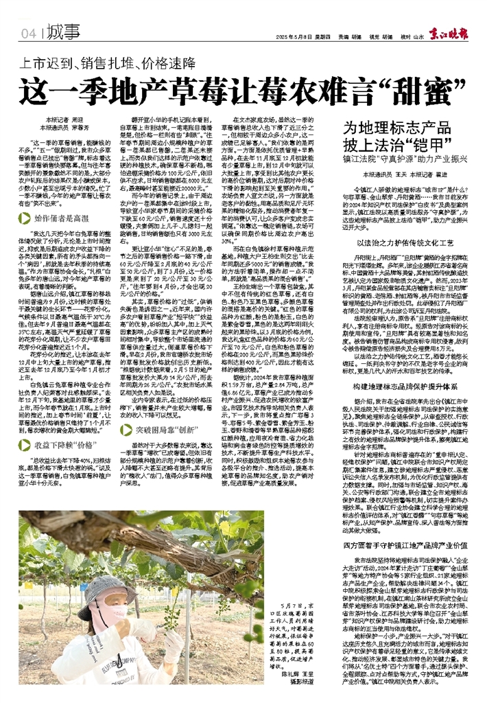 - 这一季地产草莓让莓农难言“甜蜜” 本报记者 周迎 本报通讯员 茅蓉芳 “这一季的草莓销售,能赚钱的不多。”“五一”假期刚过,我市众多草莓销售点已挂出“售罄”牌,标志着这一季草莓销售快要落幕。但与往年