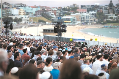12月21日,人们在澳大利亚悉尼邦迪滩参加纪念活动,缅怀邦迪滩恐怖袭击受害者。