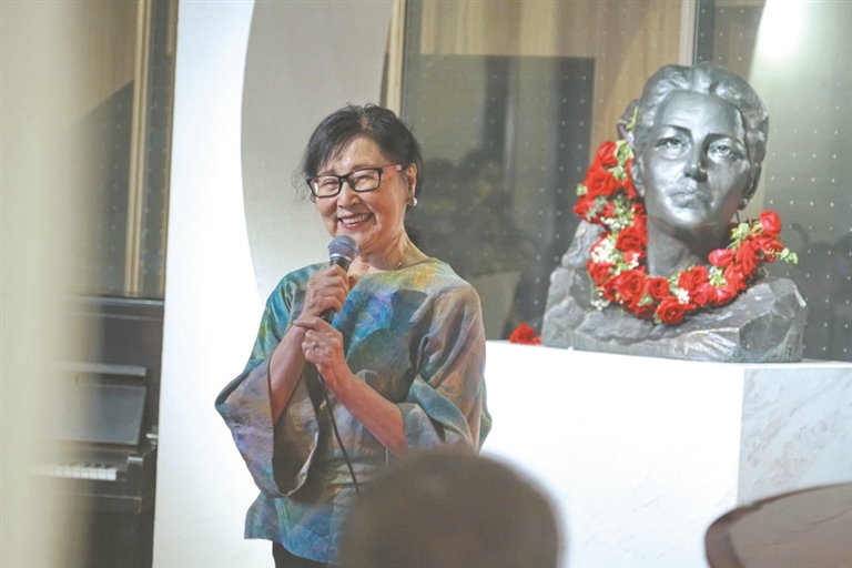 除了深耕讲台,王鸾飞从未离开过热爱的舞台。今年7月,镇江市举办“琴韵传文脉珍珠映东西”主题钢琴音乐会,86岁的她一袭盛装登台演唱。清亮的嗓音、饱满的情感、扎实的艺术功底,让台下观众掌声雷动。采访间隙,她还即兴自弹自唱了一曲《蝶恋花·答李淑一》,指尖在钢琴键上轻盈跳跃,歌声婉转悠扬,尽显老艺术家的深厚底蕴。