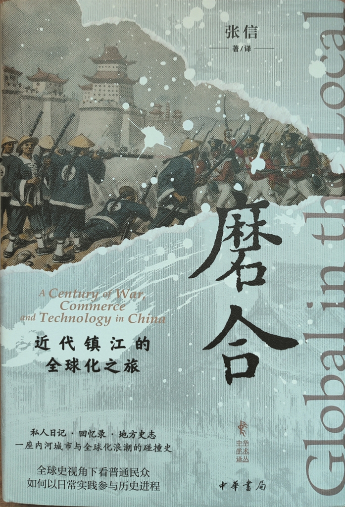 作者张信1977年考入华师大历史系,后在芝加哥大学获硕士、博士学位,书主要研究“中国地方社会在1830年代至1930年代这一百年间,如何与三个主要的全球变化互动”,这三个变化为“近代帝国主义的兴起、世界经济一体化的加速,以及西方国家机械化技术在其他国家和地区的传播”。将镇江作为研究对象,因为镇江是鸦片战争期间英军入侵的少数地区之一,是长江南北贸易的主要枢纽之一,也是中国最早看到西方工业化国家在鸦片战争期间带来的蒸汽船及其经济扩张影响的城市之一。本书“主要原始资料”目录,见本地作者撰写的日记和回忆录三种,即《草间日记》(朱士云),《京口偾城录》(法芝瑞)和《出围城记》(杨棨),台北文海出版社1986年版本。