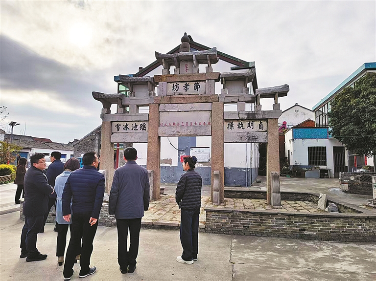 本月12日,镇江市第四次全国文物普查领导小组第三次会议在丹阳市延陵镇召开。会前,与会人员调研了延陵镇柳茹村文物普查新发现点柳茹大会堂与贡氏书院,现场了解普查进展与文物保护情况,对当地文物保护与古村落打造方面的成果十分赞赏。