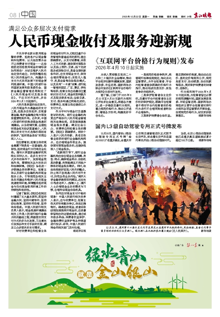 - 人民币现金收付及服务迎新规 不允许学生家长使用现金缴纳学费、拒绝客户以现金缴纳车险费用、以无法找零为由不让消费者支付现金……这些困扰老百姓使用现金的情形该如何根治?为切实维护人民币法定货币地位,防范和整治拒