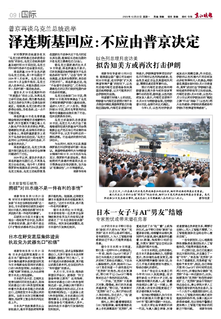 - 日本一女子与AI“男友”结婚 32岁的日本女子野口百合奈(音译)不久前与AI“男友”“克劳斯”在日本冈山县举行婚礼。有专家担忧,人与人工智能的情感联结过于深入可能带来潜在危害。 据今日日本网19日报道,野