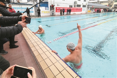 当天的游泳池,水温6℃,丝毫没有冷却冬泳爱好者们如火的热情,他们精神抖擞,热情高涨。随着一声清脆的哨响,比赛正式拉开帷幕。选手们一入水便全力冲刺,你追我赶,岸边的观众为他们不时喝彩。选手们不惧寒冷,在水中尽情畅游,享受着冬泳带来的独特乐趣。